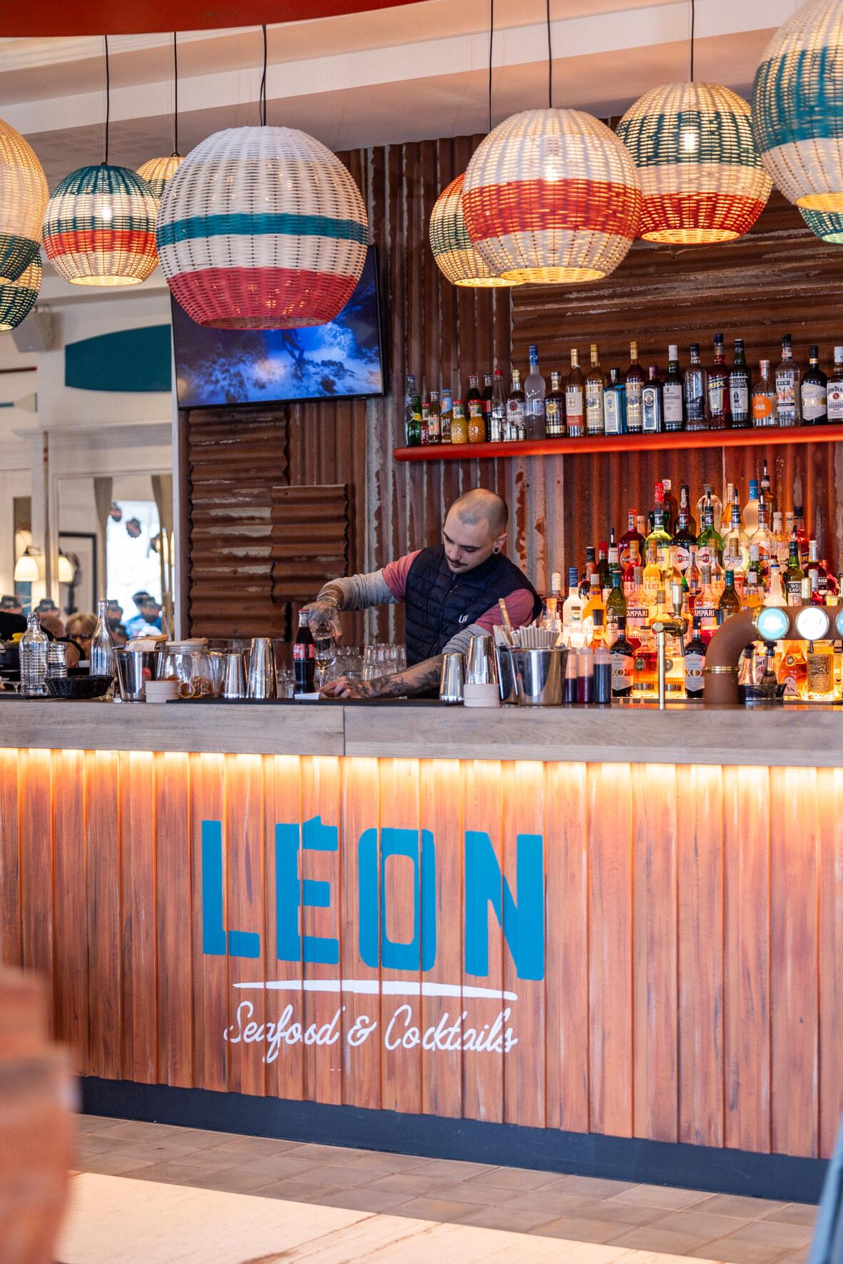 Vous souhaitez découvrir notre univers côtier, inspiré des bars de mer ? Rendez-vous chez Léon. Vous y trouverez une atmosphère détendue qui évoque instantanément la plage et l'esprit des vacances ainsi que de beaux espaces extérieurs pour profiter entre amis ou en famille. Léon vous transporte ainsi en bord de mer, sans quitter votre ville.